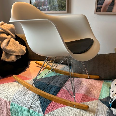 Original Eames gyngestol. Træet er knækket foran, deraf prisen.