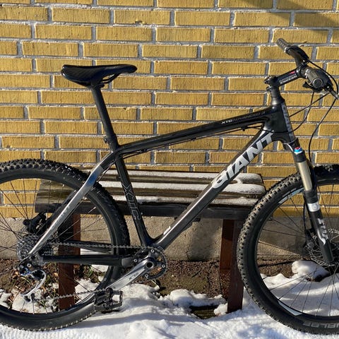 Velholdt og yderst velkørende Giant Anthem Advanced 27.5-1, en top-XC mountainbike med carbon stel og moderne komponenter. Cyklen er købt ny i 2021 (nypris ca. 35.000 kr) og har kun kørt ca. 1500 km.