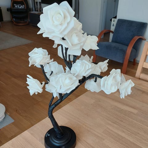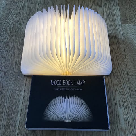 Diffuser til vand og essentielle olier, der har en doseringsfunktion, hvor den ikke “kører” hele tiden, men med små mellemrum. Har også forskellige indstillinger ift farven på lyset. Brummer en smule, men fungerer som den skal.