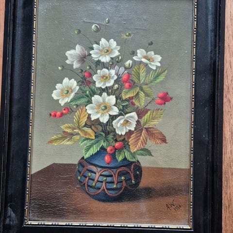 Svensk maler.ca 1930. Opstilling med kirsebær og blommer
