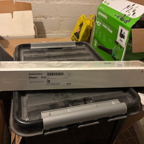 Designer: M Warnhammar/A Fredriksson b: 115 d: 12 h: 7, Rigtig pæn sort hylde med monteringsskruer, klar lige til at sætte op. Billedhylden har en speciel rille, der holder små rammer i en perfekt vinkel.