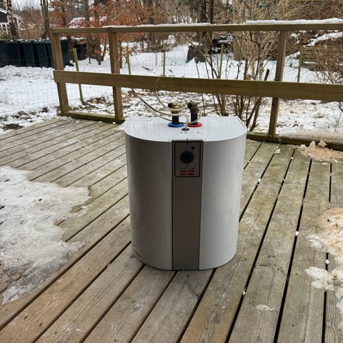 Metro varmtvandsbeholder taget ned i sommerhus mens det var fuldt funktionsdygtig! I meget fornuftig stand, inklusiv original ophæng!