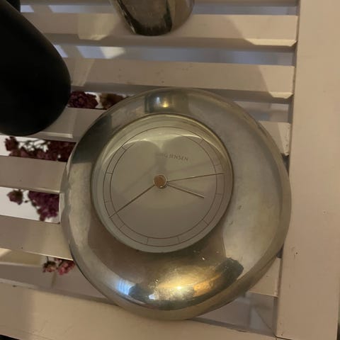 Georg Jensen vægur med sort skive og står - Ø10 cm.