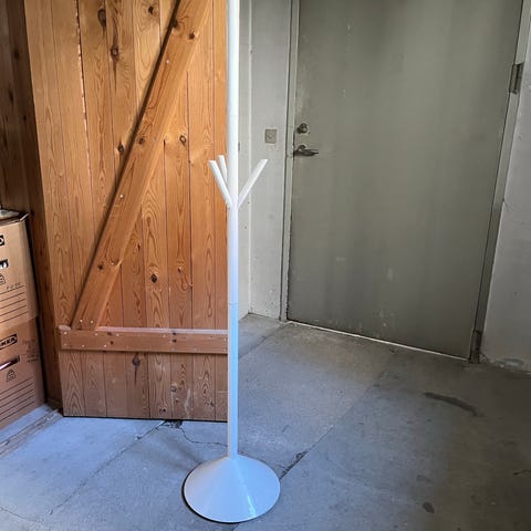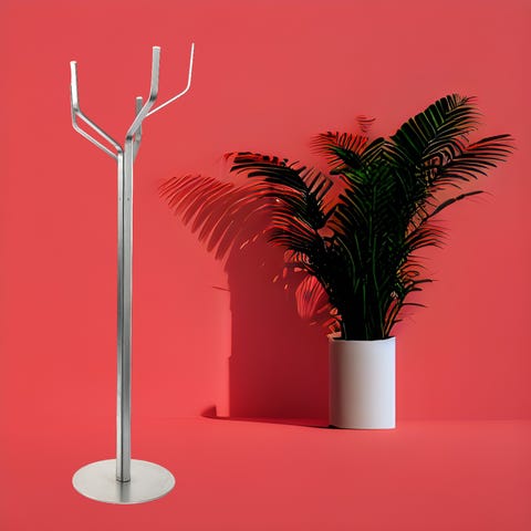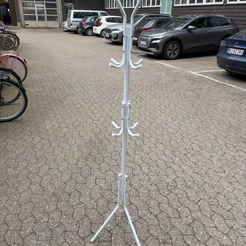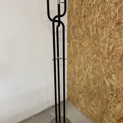 4 stumtjener i metal med sort fod og sorte kroge. Modellen har flere kroge i toppen til ophæng af jakker og tasker samt en ring midt på stativet, der kan bruges til f.eks. paraplyer. Velegnet til entré, kontor eller garderobeområde.