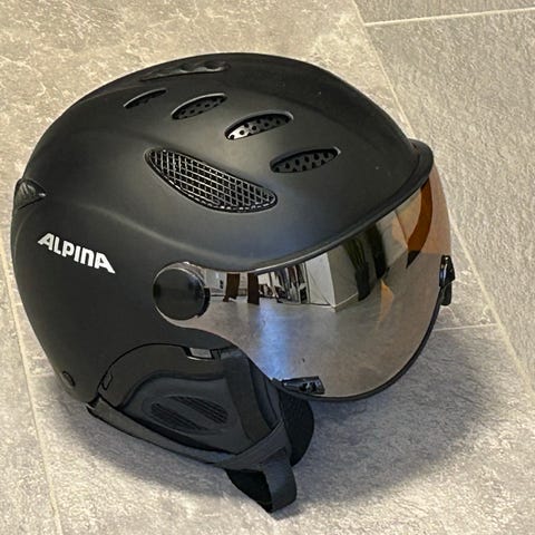 Helt ny luksus skihjelm og skibriller ud i et i størrelse 57-58 cm, justeres i nakken. Filmen er end ikke taget af skibrillerne. Indstilling for størrelsen sidder bagpå hjelmen. Herudover er der et låsetag til ekstra skibriller, hvis man har behov for det. Light technology og 180 graders udsyn.