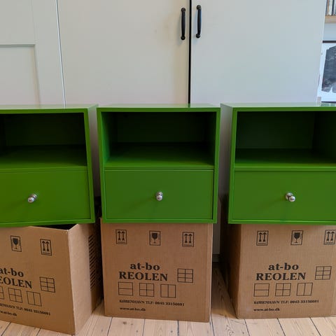 1 arkivskuffe, har et afslag øverst til venstre i skuffefronten - er ikke synligt set forfra.