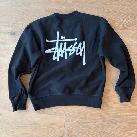 Hvid bluse med sorte kort og skrift. Blusen har ingen tegn på brugsspor eller krak
