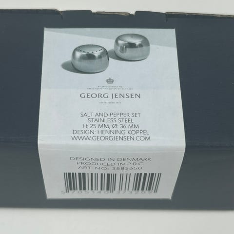 Georg Jensen Salt & Peber Sæt – Henning Koppel – Børstet Rustfrit Stål – 3,5 cm