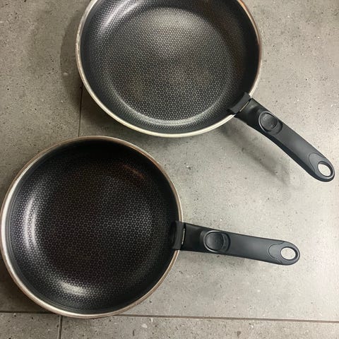 Sælger to næsten nye Onyx Hybrid stegepander i størrelserne 28 cm og 26 cm. De er kun brugt få gange og fremstår meget flotte uden ridser eller skader.