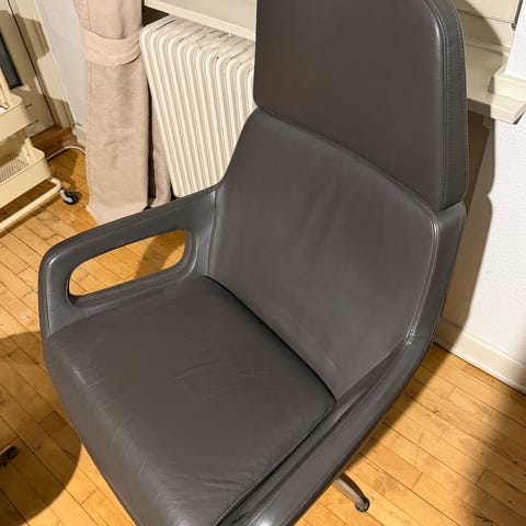 Lænestol ét er i ganske god stand med enkelt brugsspor (se billede 4).