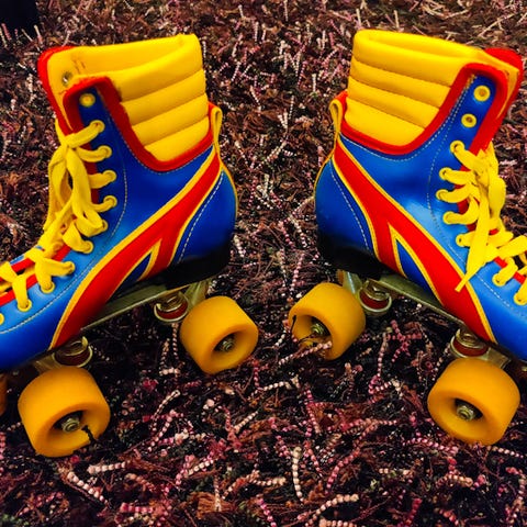 Heelys rullesko i guld. Skoene har indbyggede hjul i hælen, så de kan bruges både som almindelige sko og til at rulle på. Overdelen er i skinnende guldmateriale med snørelukning og gummisål. Velegnet til børn, der ønsker sko med hjul til leg og transport.