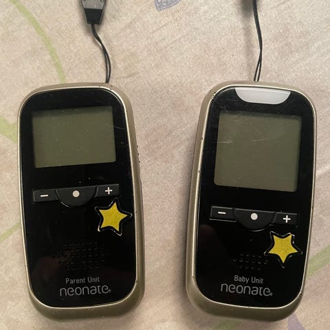 Neonate baby alarm med baby unit, forældre unit samt oplader.