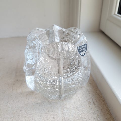 ❄️⛲️🕯 🇸🇪 Svensk Glaspuster, Lysestage Skål Fyrfad, SEA GLASBRUK IGLO