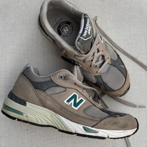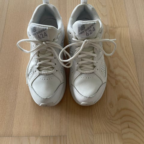 New Balance sneakers i størrelse 41,5 Modellen er i en lys, overvejende hvid farve med lysegrå detaljer og klassisk New Balance-logo på siderne. Overdelen fremstår som en kombination af tekstil og syntetiske materialer, med snørelukning for justerbar pasform. Ydersålen er mønstret for greb og stabilitet ved gang. Velegnet som hverdagssko eller til let træning.