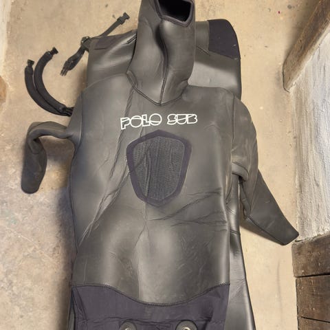 9mm SEAC vand dragt, 9 mm SEAC dragt med hættejakke og farmer John bukser. Fejl fri og i fin stand. Har brugt den kun en gang. Den er for lille til mig. Størrelse XL.