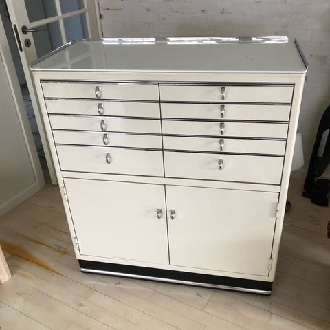 Super cool vintage tandlæge/klinikskab i metal.