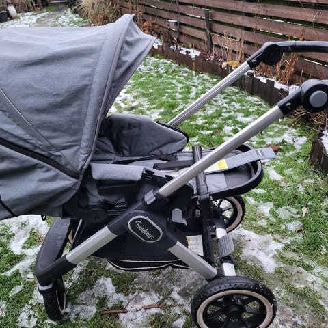 Dejlig varmt lammeskindssæde og pose. Brugt meget få gange, købt sidste år. Skindet er som nyt.