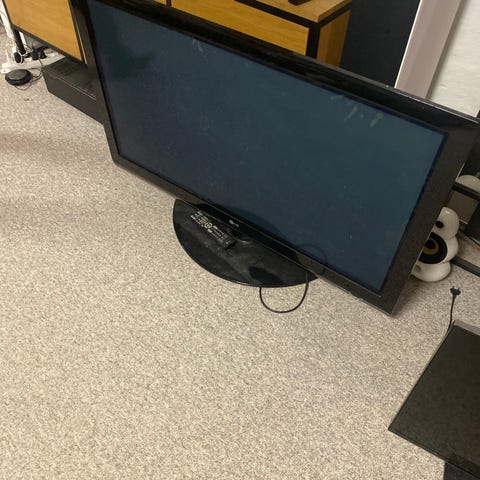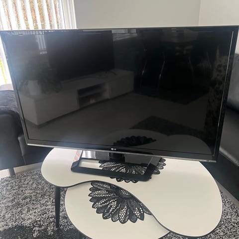 LG tv. Fladskærms-tv med forskellige tilslutningsmuligheder på bagsiden, herunder LAN, AV-indgang, komponent- og HDMI-indgange samt antenneindgang. Velegnet til almindelig tv-brug og tilslutning af eksterne enheder som fx tv-boks, spillekonsol eller medieafspiller.