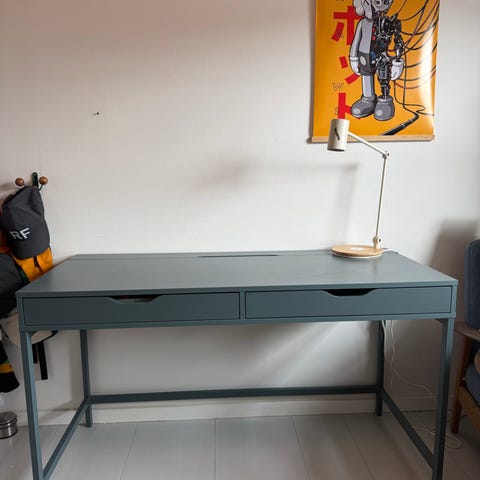 Super fint skrivebord fra Ikea. En fin blå farve. Ledningen kan gemmes, se billeder.