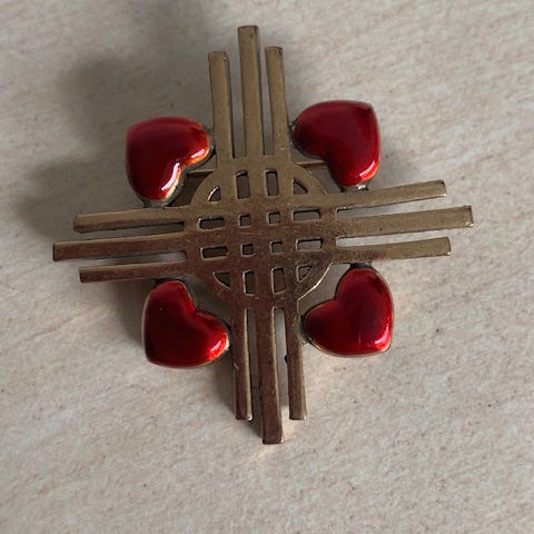Broche, forsølvet, Pilgrim, Broche i elfenbensfarvet/gullige nuancer.