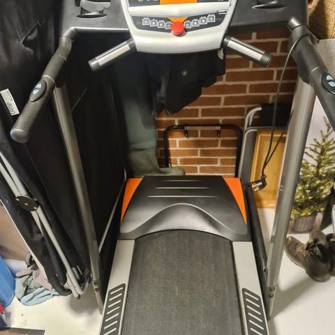 Max hastighed er 10km/t max belastning 120kg. Nemt at flytte rundt på, da der er hjul i den ene ende.