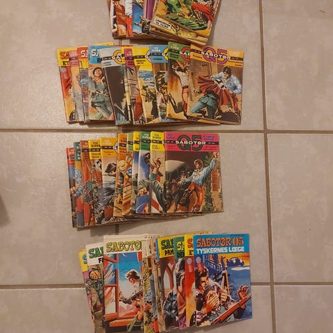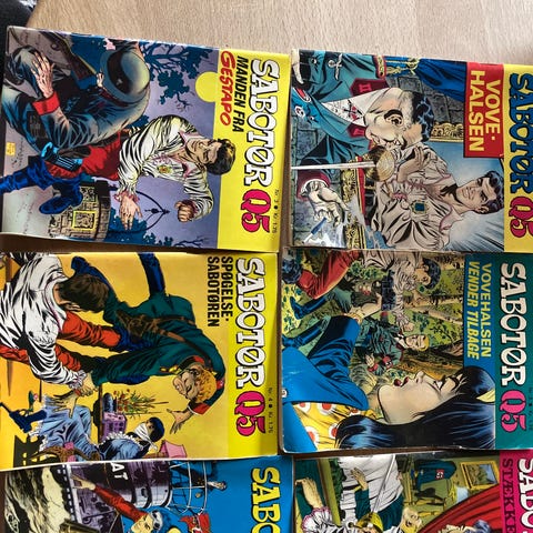 19 hæfter med Sabotøren Q5, klassiske tegneserie. Der er nr 12,18,22,25,31,33,36,38,56,57,65,71,85,94,104,128, 135,138 og 141