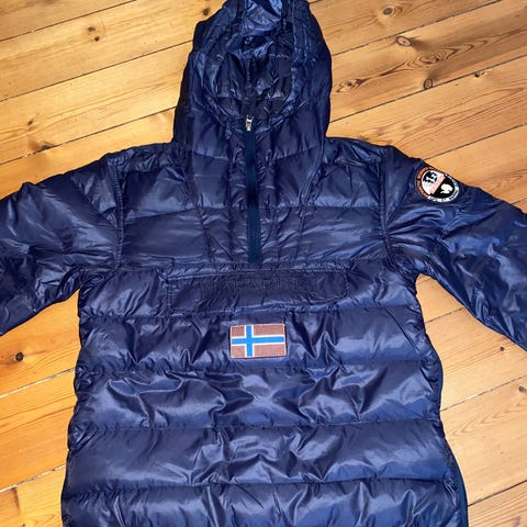 med stor lomme på maven og Hætte. Den kan lynes helt op i halsen.