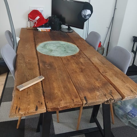 Flot plankebord med 4 læderstole
