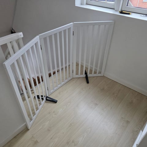 Kan bruges til at afgrænse hundens eller børns færden ved fx. trapper eller tilstødende rum. Består af fire sektioner der er samlet med hængsler som kan åbnes og foldes som man ønsker.
