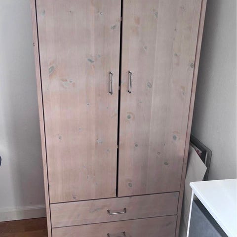 Sødt lyserødt træskab. Sælges, da jeg flytter og ikke har plads til det. Har brugtmærker, derfor den billige pris. Fejler ellers intet🤓Skal bæres ned fra 1.sal
