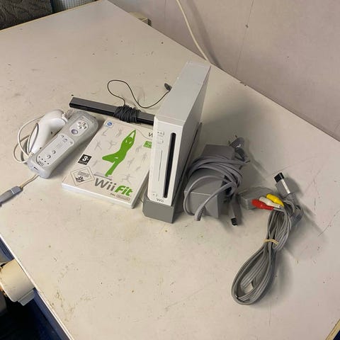 Nintendo Wii konsol med tilhørende sensorramme, strømforsyning og AV-kabel. Medfølgende to Wii-fjernbetjeninger samt nunchuk-controller. Derudover forskelligt plasttilbehør, herunder rat og andet grebstilbehør til spil. Flere Wii-spil ses på billederne, blandt andet sport- og familiespil. Velegnet til brug med Nintendo Wii systemet til bevægelsesbaserede spil i hjemmet.