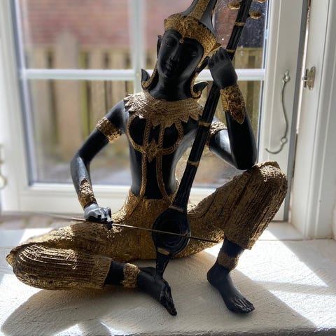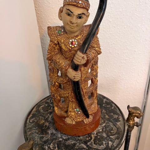 Asiatisk munk ,rød med guldfarve i træ. H. 34. cm. Ps. se også mine andre annoncer