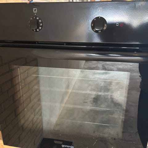 Gorenje indbygningsovn med varmluft i rustfrit stål.