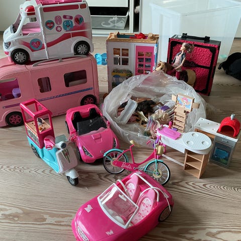 Barbie Dreamhouse samt heste, dukker, biler, dyr og tøj.