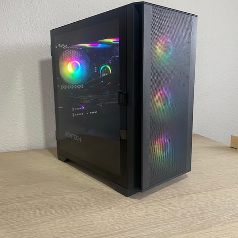 Gaming PC, der trækker spil som Valorant og LoL på max settings, og Fortnite og GTA5 på medium/high settings. Meget tunge spil som Call of Duty vil nok kræve low/medium settings. Den er klar til brug med en ny installation af Windows 11 med licens.
