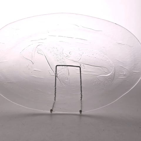 Flot sildeskål af glas, model LL 653. Formgivet af Paul Isling og fremstillet af klart krystalglas hos Nybro Glasbruk.