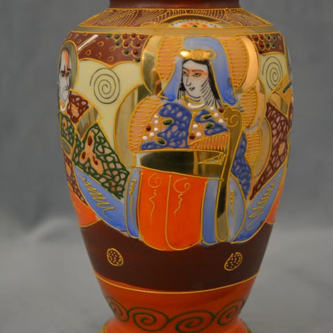 Japansk cloisonne vase på stand med mønster og sommerfuglemotiv