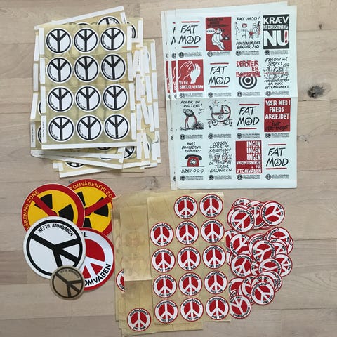 Klistermærker fra dengang modstanden var allerstørst i befolkningen. De er velbevaret og i dag historiske. Kr. 200 - eller giv et bud.