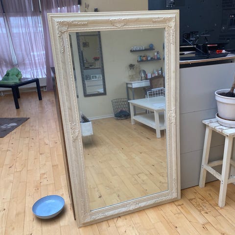 BGA spejl med organisk, bølget form. Vægspejl i klar spejlglas uden ramme. Egnet til ophæng i entré, soveværelse, stue eller andre rum, hvor der ønskes et dekorativt spejl til daglig brug.