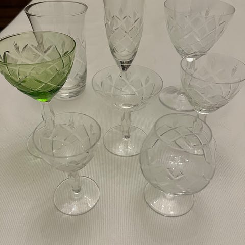 24 Vin glas Glas 40 år gammel 6 sæt. EATON glat Lyngby glas