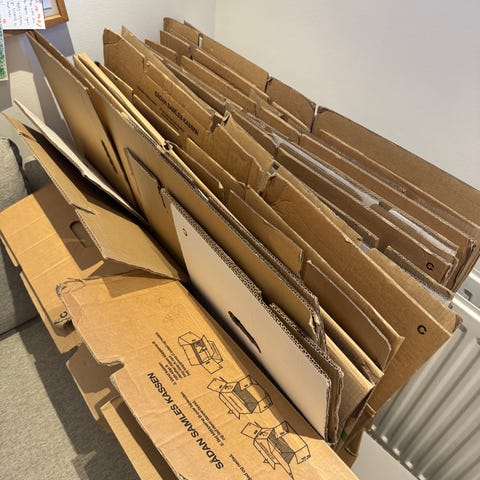Der er en kasse der er lidt i stykker, som har fået lidt gaffatape men kan stadig bruges.