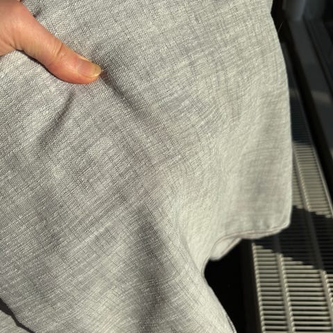 Ca. 18-19 meter. Fransk toile de jouy. Hårfarvet baggrund med gråsort mønster.