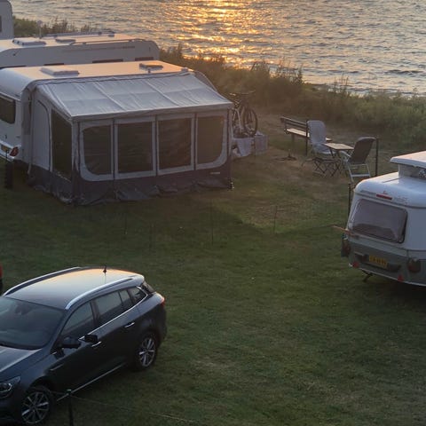 Markise til splitbus t1 sort/hvid stribet