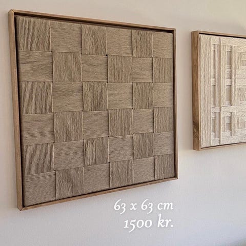 Minimalistisk unika kunst af viklet bomuldsgarn i håndlavet ramme🤎
