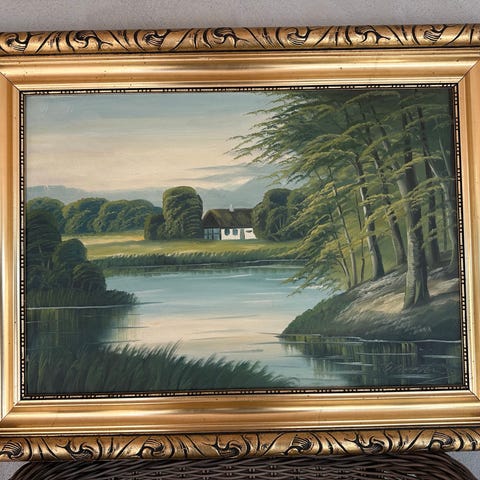 Landskabsmaleri i olie på lærred med rammemål 87x61 cm. Motivet viser et dansk landskab med lyng, hede, skov, sø og gårdbygninger i baggrunden under lys himmel. Bag på maleriet er anført med blyant: “Lyngbakken ved Hald Sø”. Maleriet er monteret i en profileret guldfarvet træramme. Signatur “J. Jessen” ses i nederste venstre hjørne. Bagsiden viser lærred opspændt på træramme med ophængssnor.