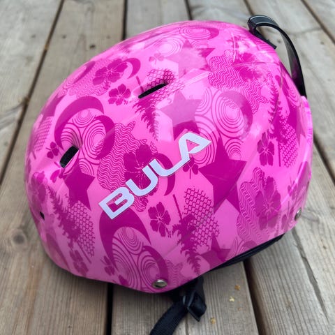 Gul cykelhjelm fra Scoot and Ride i god stand.
