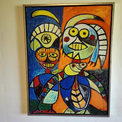 Værket er et klassisk eksempel på hans Cobra-inspirerede stil med kraftige penselstrøg, intense farver.