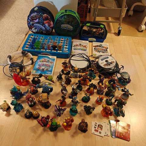 Nintendo Wii Skylanders Giants spil med portal og flere figurer. Sættet omfatter spil til Nintendo Wii, en portal of power med tilhørende kabel samt en samling Skylanders-figurer i forskellige udgaver og elementer. Velegnet til brug sammen med Nintendo Wii-konsol, hvor figurerne placeres på portalen for at blive aktiveret i spillet.