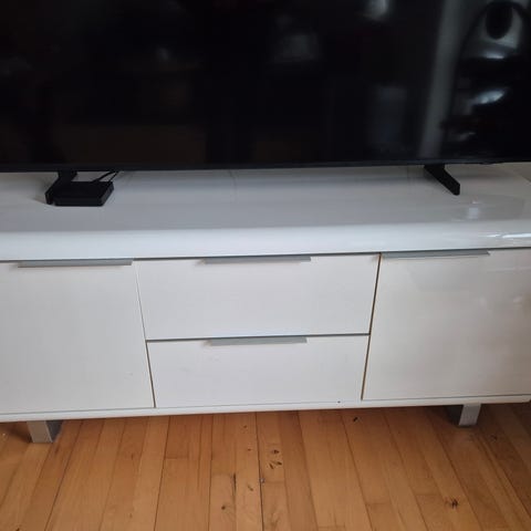 SKAL SÆLGES HURTIGT! Tv-bord træ look med hylder og skydelåge