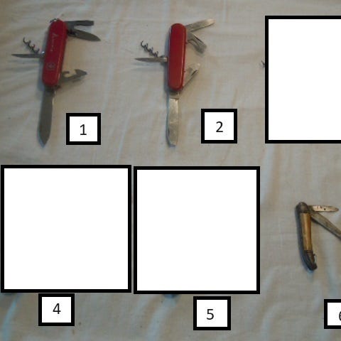 Kniven har saks, neglefil/skruetrækker, kniv, pincet samt tandstikker